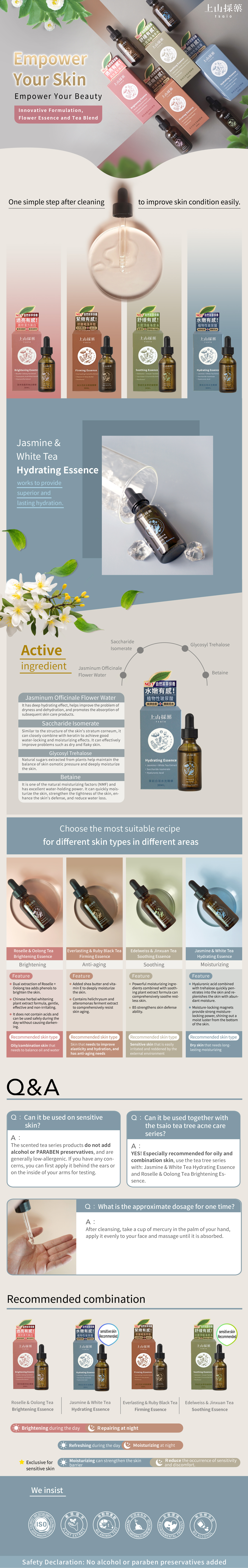 Jasmine water exudes a natural fragrance, combined with the soothing effect of white tea extract, creating a new use experience.