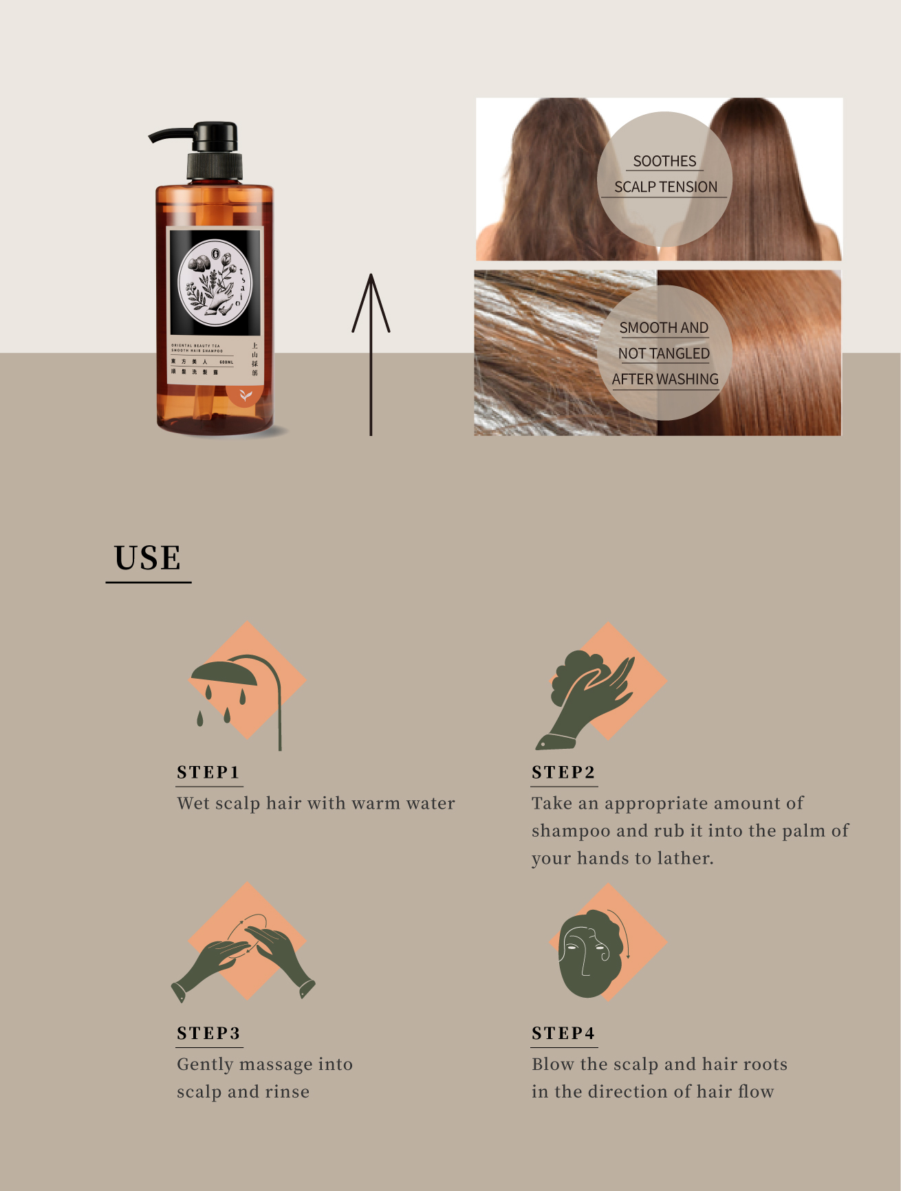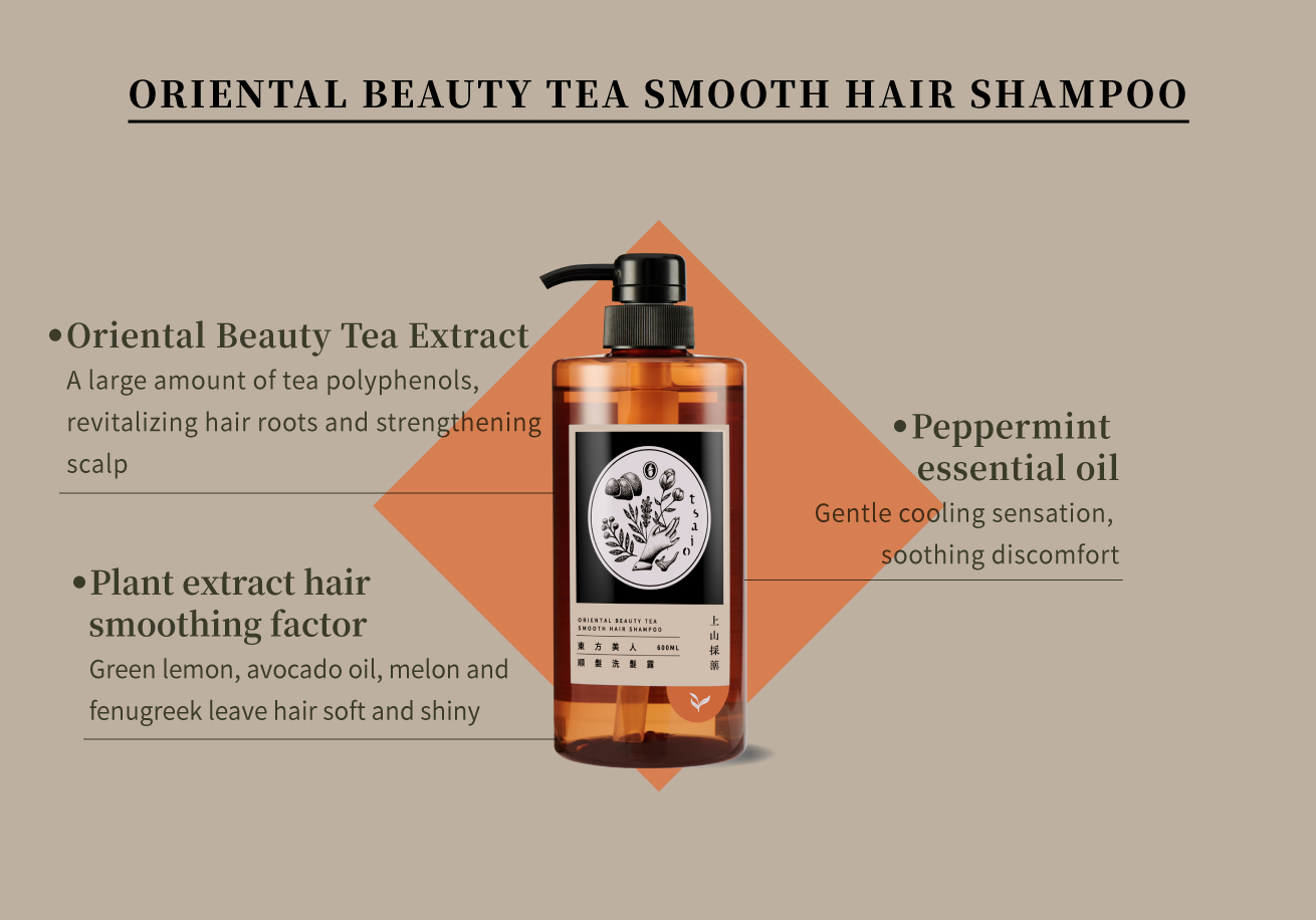 Oriental beauty tea match with peppermint essential oil to relieve scalp and relax mood, the plant extract help to smoothing hair after