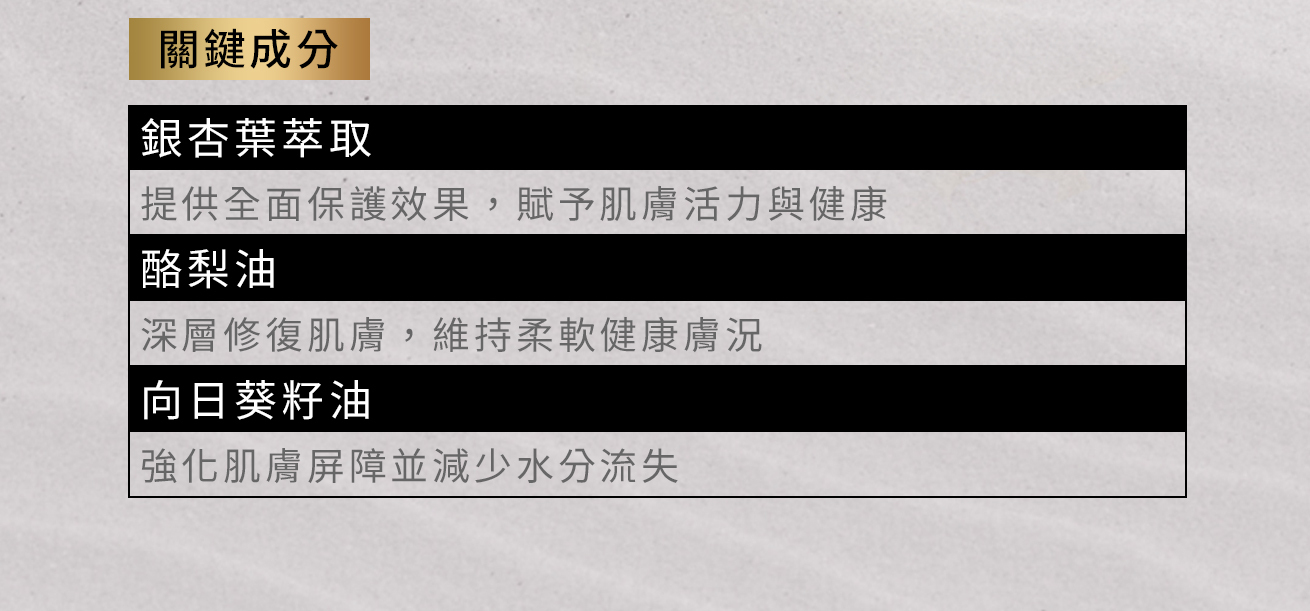 ✅銀杏葉萃取:提供全面保護效果,賦予肌膚活力與健康