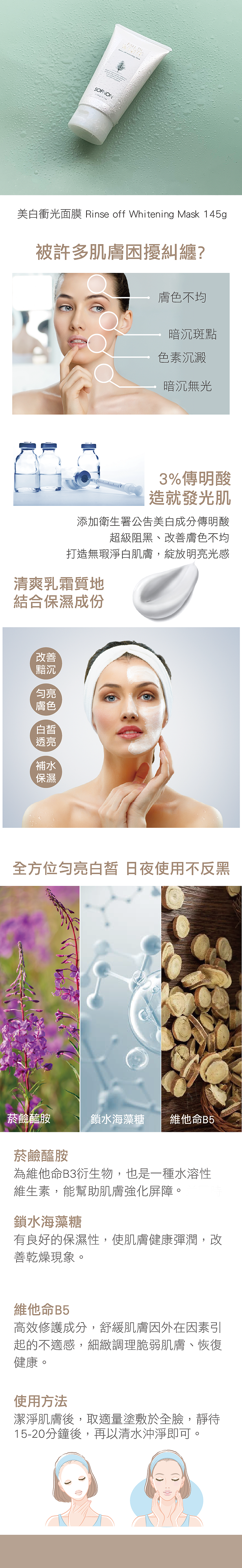 【SOFNON詩芙儂】戀戀白美白衝光面膜145g