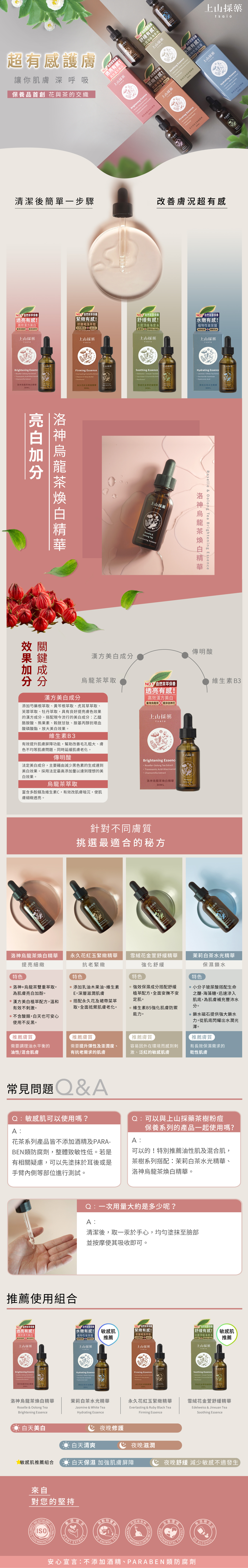 洛神+烏龍茶雙重萃取,融合芍藥、黃芩、虎耳草、芙蓉、牡丹等漢方成分,