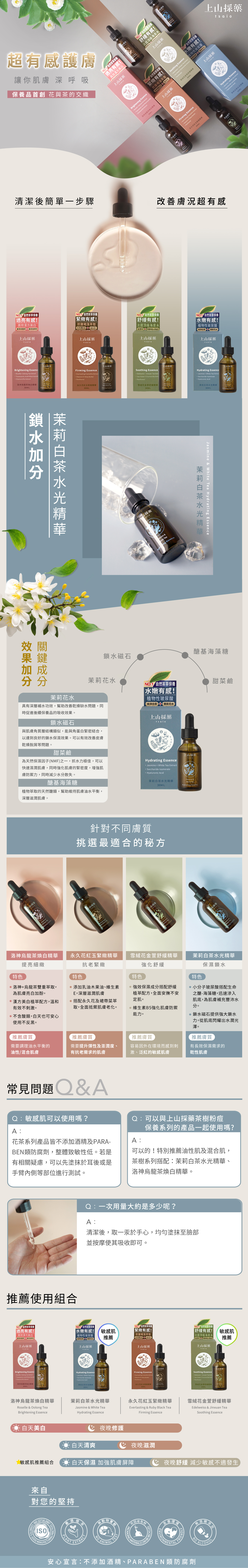 茉莉花水散發自然清香,搭配白茶萃取的舒緩效果,創造全新使用感受。