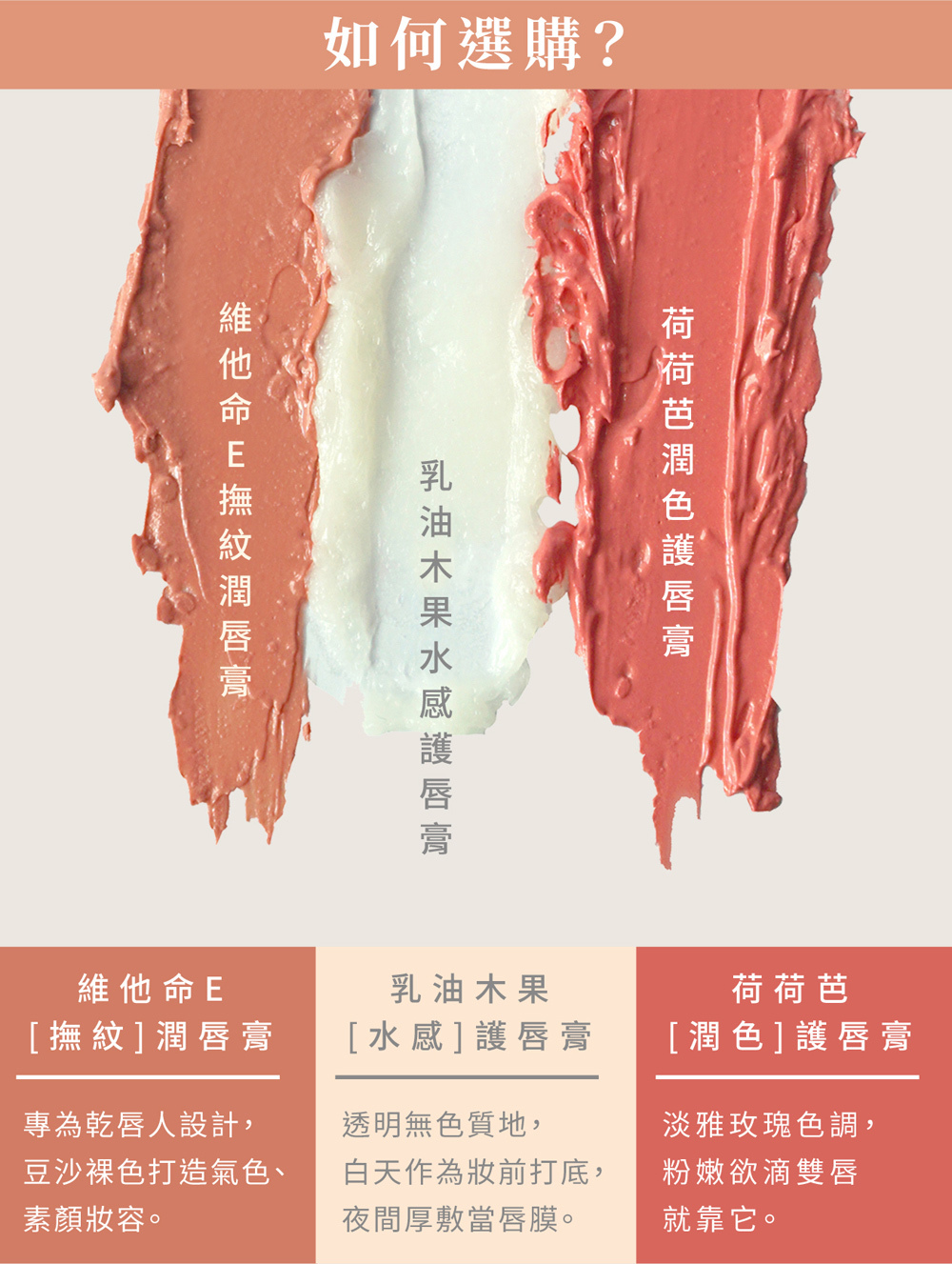 護唇膏*1(乳油木、荷荷芭、維他命E 任選1款)