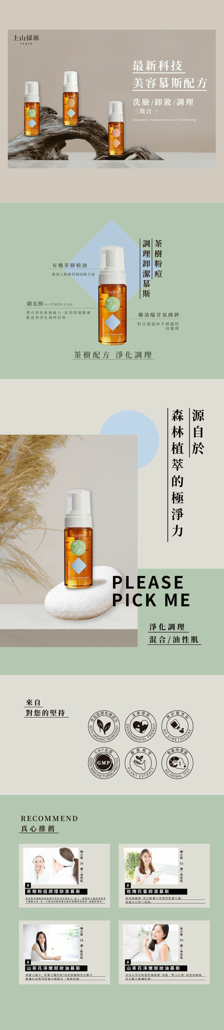 添加有機茶樹精油能調理油水平衡,進而預防問題肌膚產生,超微米綿密泡沫可深入肌底深層控油