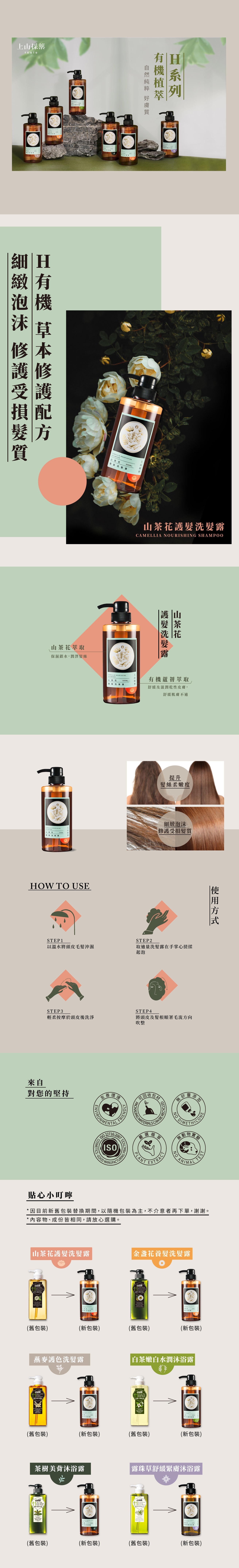 有機植萃添加,潔淨秀髮、減少斷裂,使頭皮油水平衡,清爽柔順、滋潤修護、抵禦環境傷害。