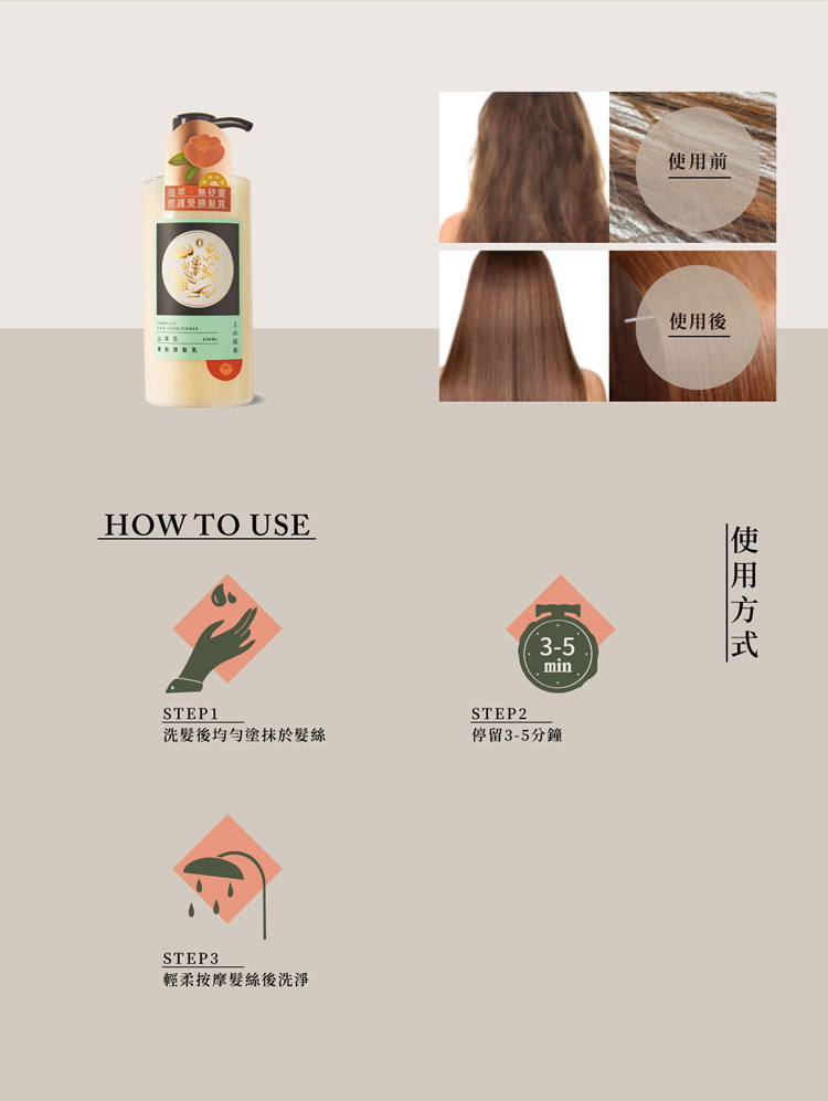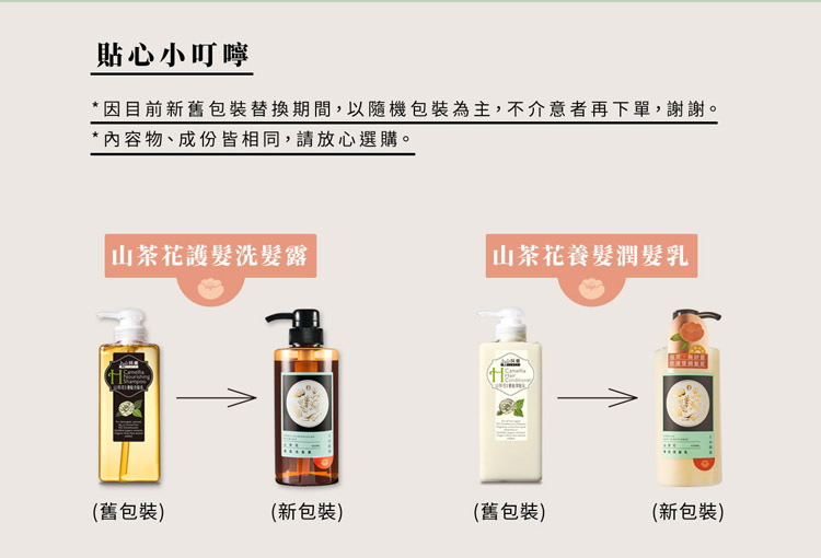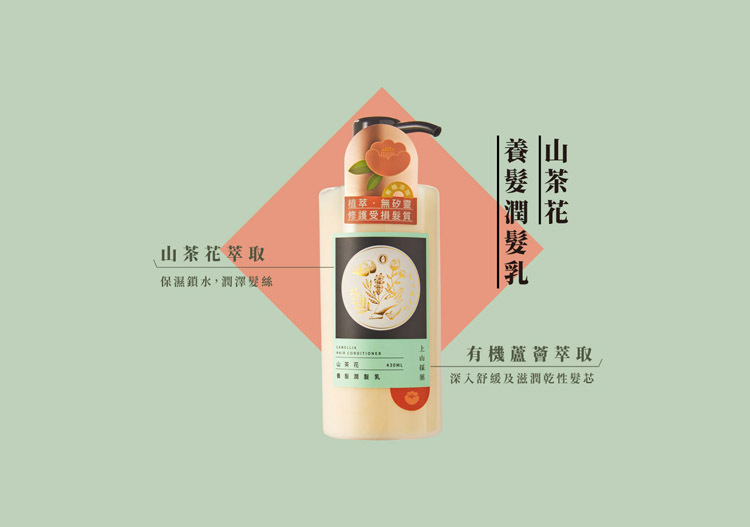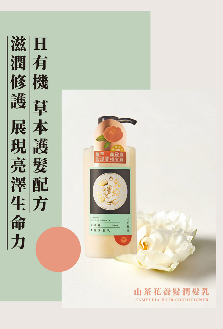 含山茶花、有機蘆薈萃取以及護髮因子修護保濕,從髮芯到外滋潤髮絲、完整修護,展現亮澤柔順秀髮生命力。