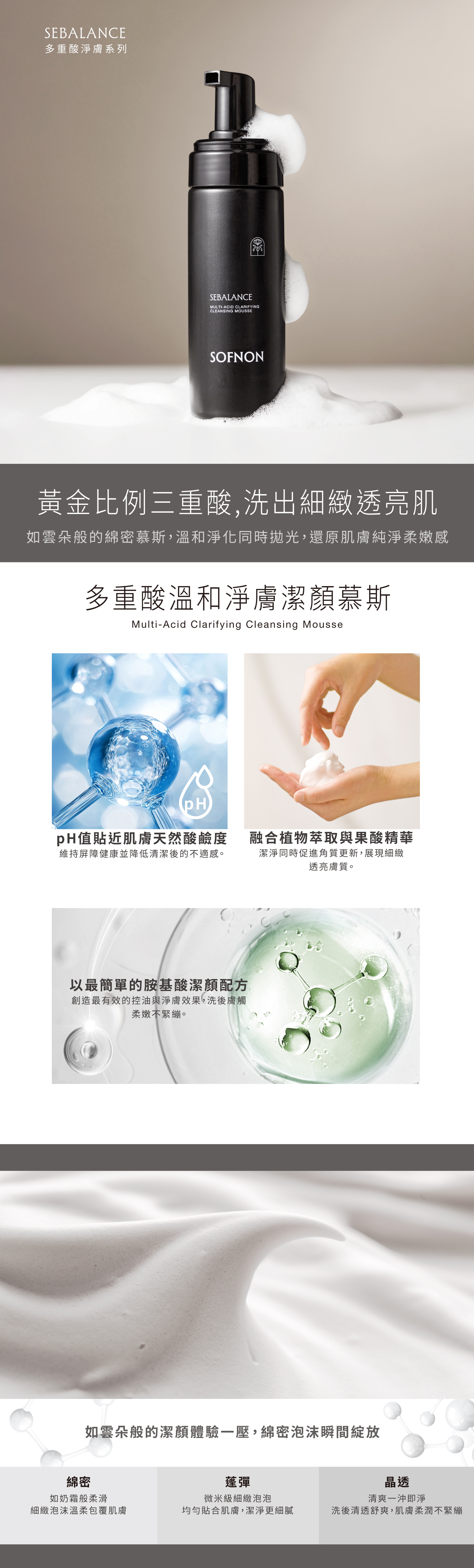 採用最純粹的胺基酸潔顏配方,泡沫綿密細緻。在淨化毛孔的同時維持肌膚天然屏障,融合果酸精華溫和促進角質更新,是每日基礎清潔的首選,展現細緻透亮感。