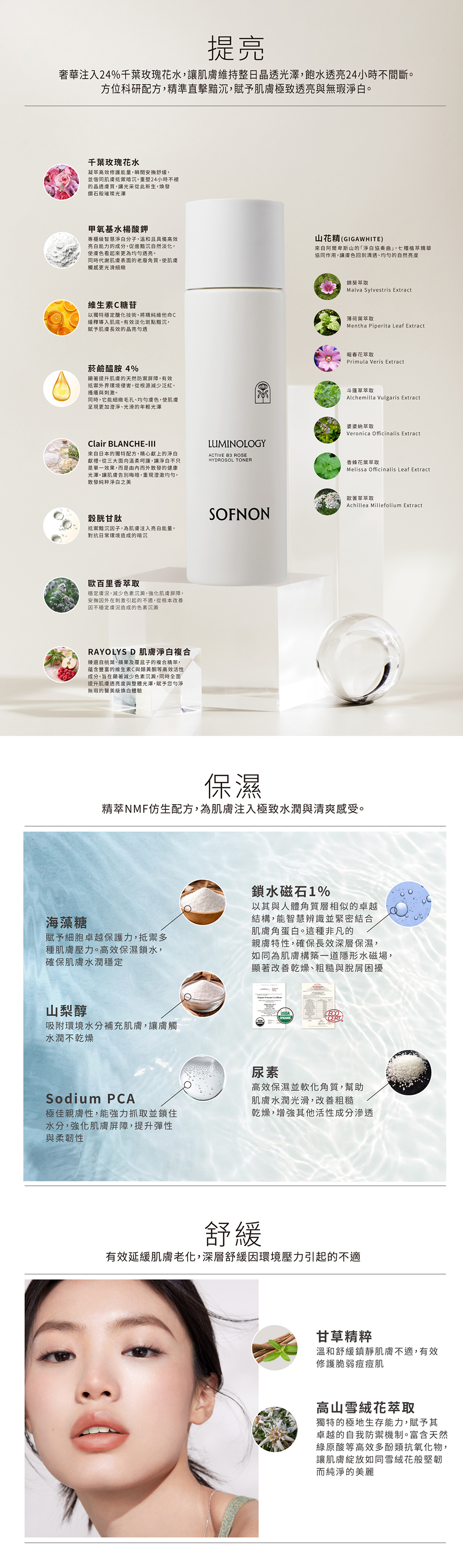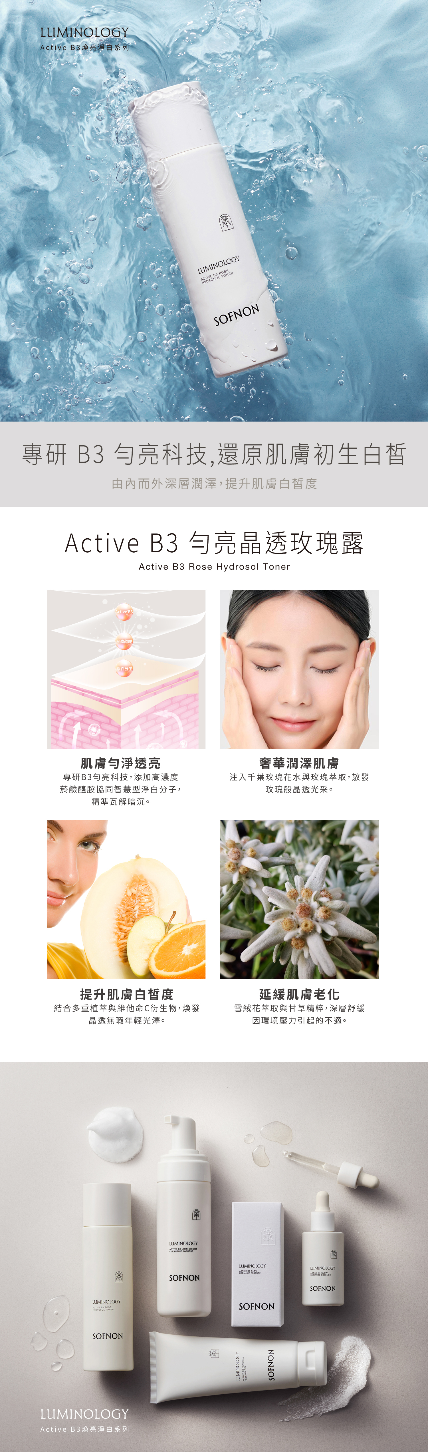 結合千葉玫瑰花水與高濃度菸鹼醯胺,精準瓦解肌膚瑕疵。清爽如水的質地能迅速滲透,為肌膚注入飽滿的亮白分子,讓臉部散發如玫瑰盛開般的晶透光采。