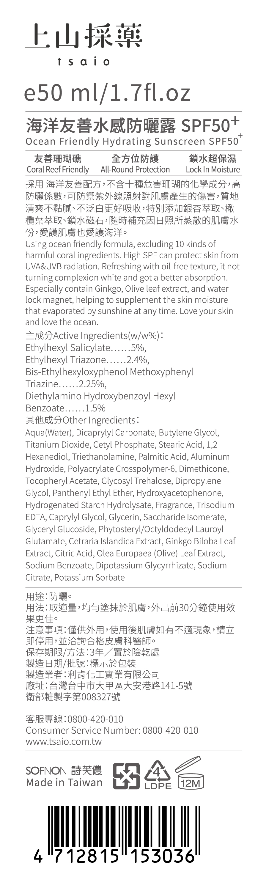 不添加十種危害海洋生態的防曬成分,防曬同時又能保護地球。