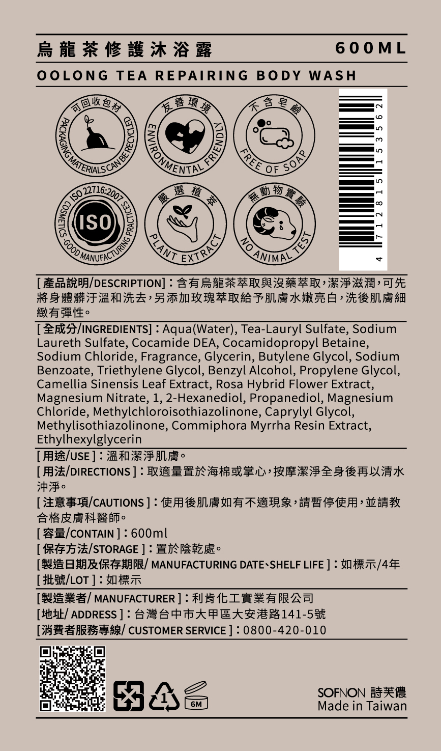 添加烏龍茶、沒藥與玫瑰萃取,不只溫和洗去髒汙還能使肌膚細緻有彈性。