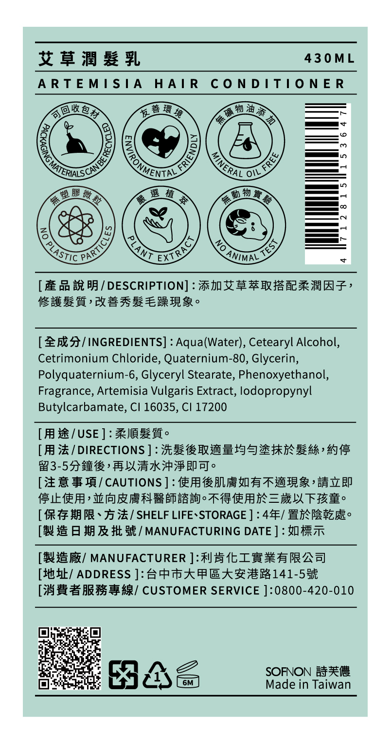 【tsaio上山採藥】艾草潤髮乳430ml